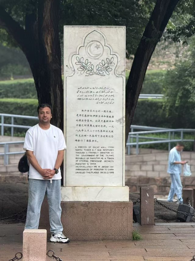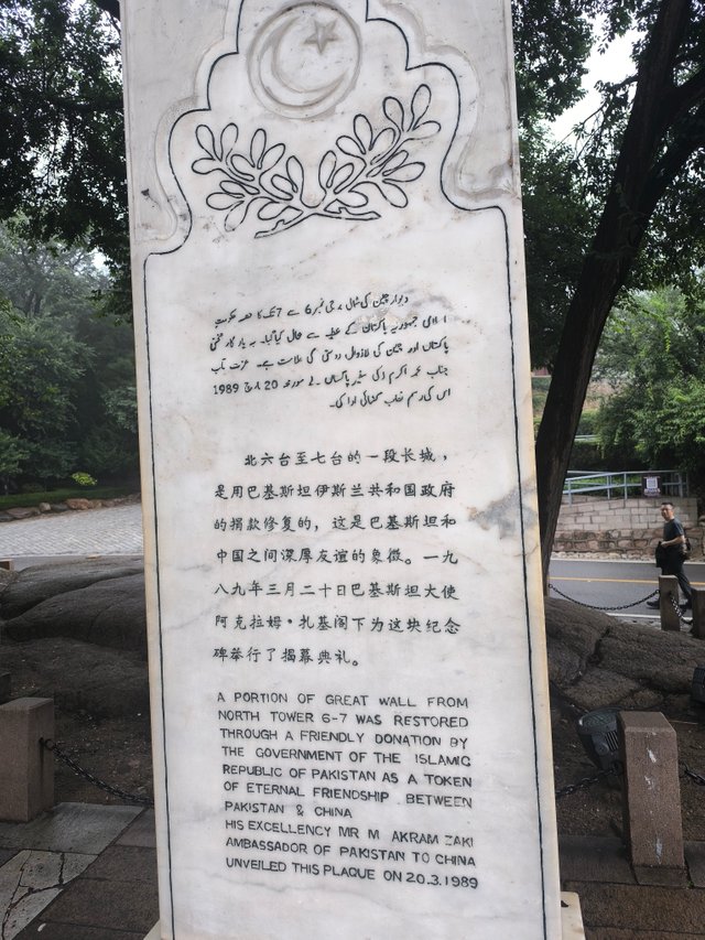 We also a saw a board where it was written in Urdu that Some part of Great wall of China was restored with the Cooperation of Pakistan and I was overwhelmed to see a note written in our National language "Urdu" in a foreign Country so I immediately went and took a picture with that board to keep it as a memory.