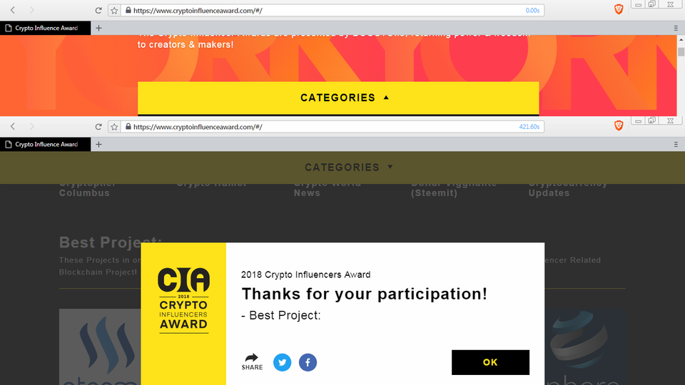 - Click here to open the Crypto Influencer Award website.