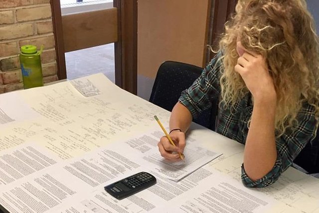 In the process of the student creating this hilarious note card, she had to review all of her materials, type out her "cheat sheets", and arrange them in a logical order so she would be able to locate the essential information. Do you know what she was doing the entire time she was building this practical joke? She was thinking. She was very thoroughly reviewing her class materials.