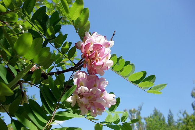 Редко у нас встречающееся дерево с великолепными душистыми цветами – розовая акация (Robinia Viscosa).
