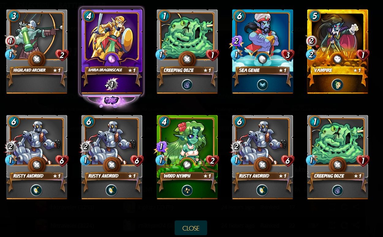 Steemmonsters賽季完結了,大家抽中了什麼卡呢?有抽中好東西嗎? 小弟人品再次大爆發~ 80張抽中了2傳說1金普通 6 epic! 還有大量精良卡就不說了. 最開心的是抽中新的水屬傳說卡,用了幾埸,的確很強. 加上水屬召換師一回合可以輸出5點傷害! 還只是等級1就這麼強大了! 這張卡必定要升級!