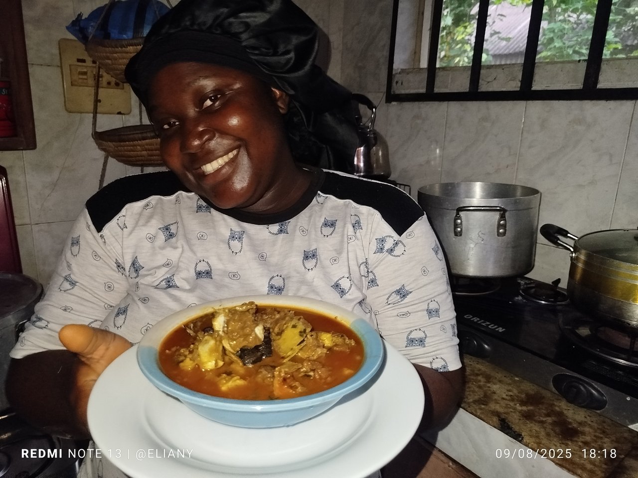 I added achi that I moisturize using palm oil then stir the pot to avoid lumps from the achi in the soup. So the stirring will helps dissolve any lumps