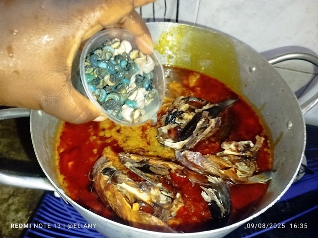 Added sea snail (locally called nkor nkor)and allow it to cook for some time