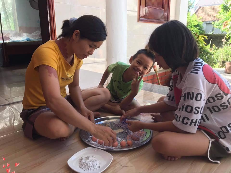 Today 5/5 is Mid-year Festival - Lunar (Doan Ngo) in Vietnam. Mother and children are making cakes to celebrate the holiday.