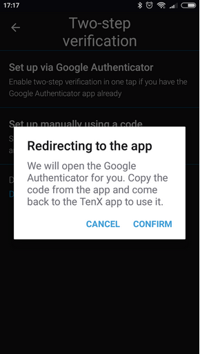 Enter the 6 digit code here in the TenX app to complete the 2FA verification.