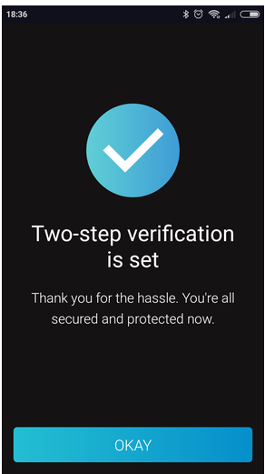 Click on OKAY to access your account. Note that whenever you log out, you will be required to use your 2FA to login.