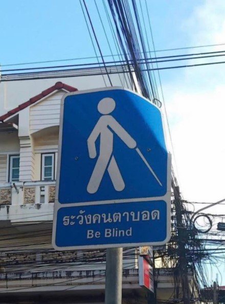 How they ended up with BE BLIND from that translation is a huge mystery to anyone I know that speaks English and Thai. There is no logical reason for why it is that this was the translation that they came up with.