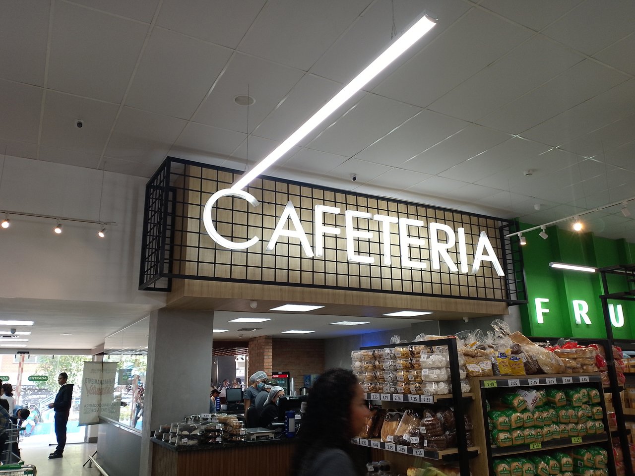 Hola amiga es un gran supermercado equipado y con una extensa cantidad de productos para ofrecer al publico, ademas de tener difrentes departamentos, como cafeteria, panaderia todo muy bien distribuido y amplios pasillos para el desplazamiento y comodidad de los asiduos clientes.