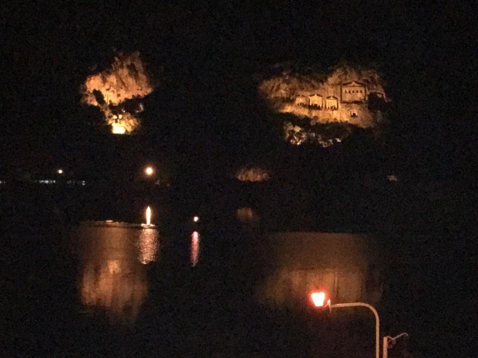 Kaunos'luların (Kbid'lerin) muhteşem eserleri olan kaya mezarları gece görüntüsü...