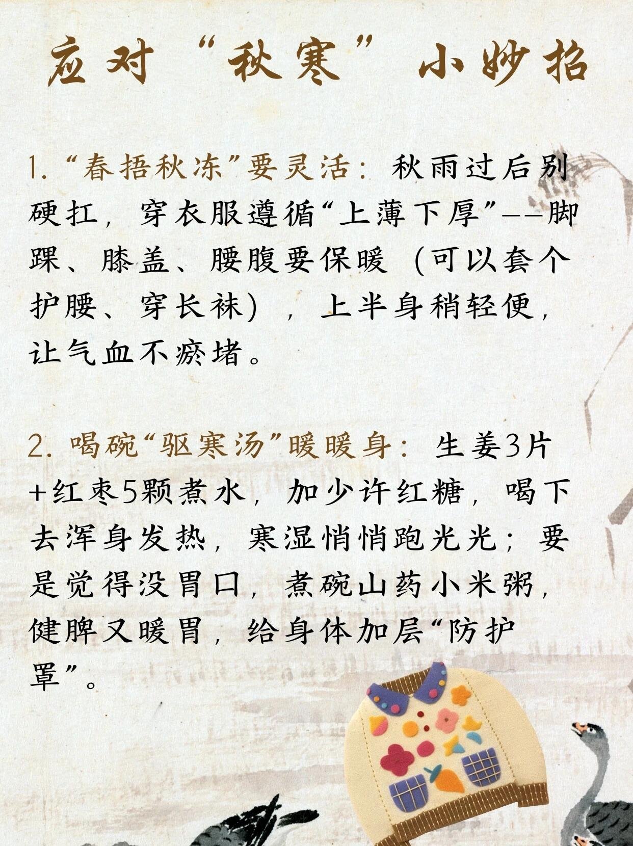 宝子们👋,最近是不是发现,一场雨过后,风里都带着凉意了?老祖宗说的“一场秋雨一场寒”,可不只是天气变化,更是在提醒咱们:该跟着节气调养生啦!从中医角度看,这背后藏着不少健康学问呢~
