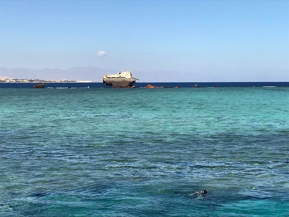 Old rusting Lara ship near Tiran Island. There is something sinister in it, even in the daytime🤔