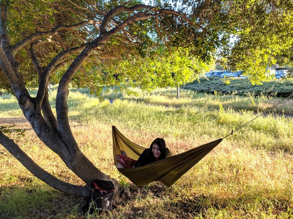 On Tuesday, Supna had her birthday and decided to enroll in medical school starting this upcoming academic year! To celebrate, she used the hammock on Stanford's campus: