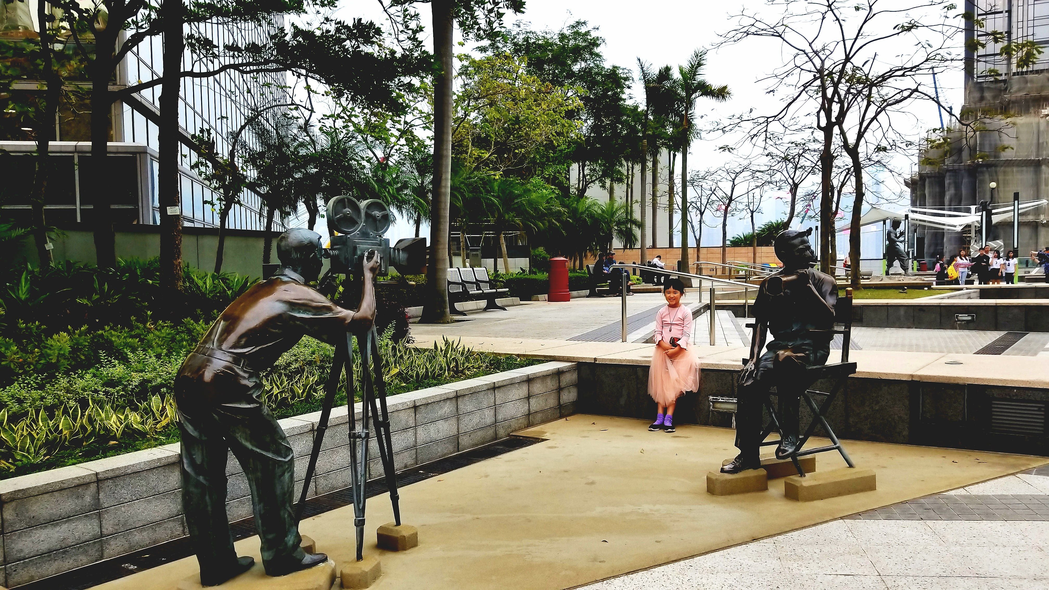 This is Garden of the stars in the Kowloon side of Hong Kong where you can see the view of Hong Kong Island and the statues of some Hong Kong movie stars