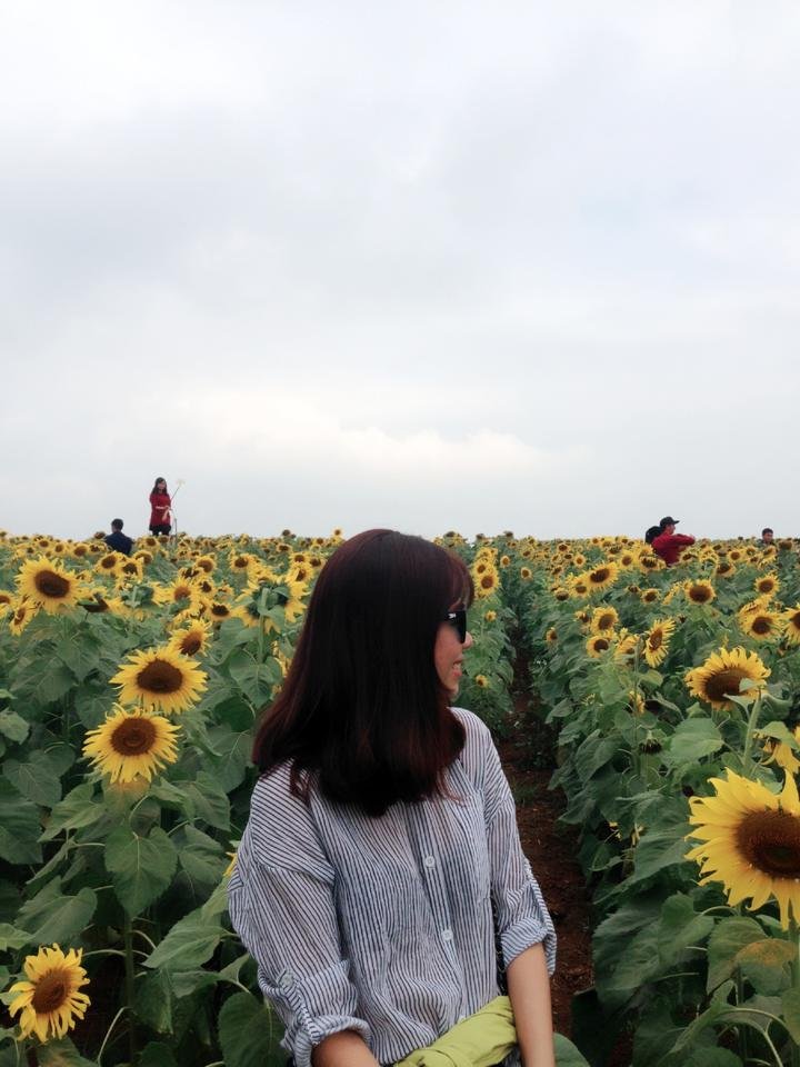Ở quê mình có nhà máy sữa TH true milk, vì vậy xung quanh trồng rất nhiều cỏ và hoa hướng dương. Hoa hướng dương mỗi năm sẽ có 2 vụ. Mình chỉ nhớ là lúc Hoa nở rực rỡ như này là vào tháng 6 và tháng 12.