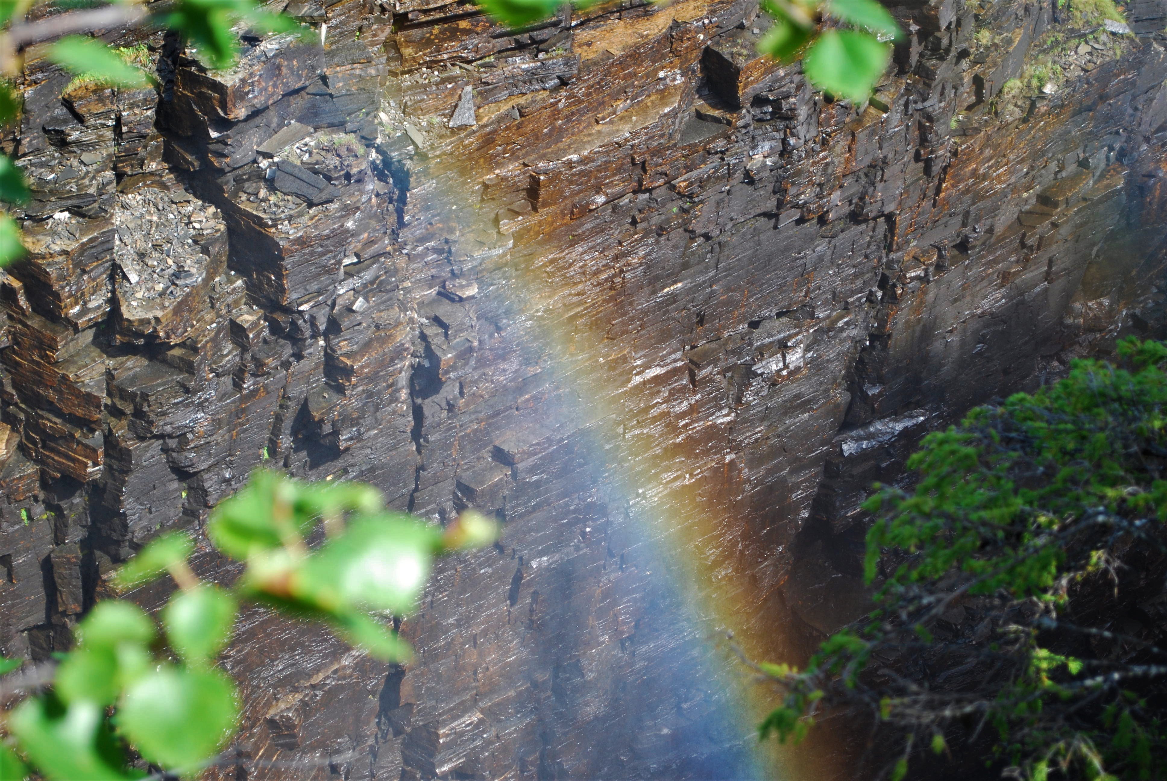 Den Brakkafallet nahmen wir ebenfalls unter die Lupe. Ein kleiner aber schöner Wasserfall. Vom Parkplatz war es ein kurzer Aufstieg. Was uns hier immer wieder auffällt: Oftmals sind solche Naturschönheiten ohne Absperrung oder Sicherheitsseile zugänglich. Jeder darf so nahe ran gehen wie er möchte, man setzt auf Eigenverantwortung für sich und die Natur. Toll! Aber zurück zum Wasserfall. Ein Blickfang sind die Felsen, sie schimmern im Licht silbern und sind sehr glatt. Es sieht aus, als wäre alles mit purem Silber überzogen. Leider haben wir es nicht geschafft dies auf den Bildern festzuhalten.