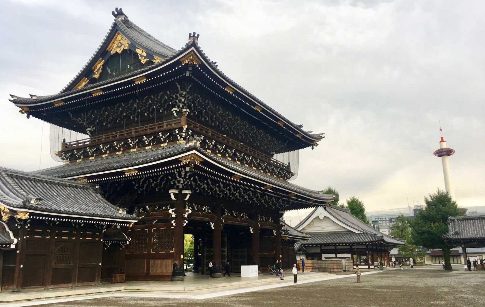 My real first day in Kyoto starts after a good night on my futon. It's 8 o'clock, I go out for coffee and start my day visiting. Near the train station there are several large Buddhist temples and a garden that are quite unknown to tourists. I find a cafe where I eat breakfast, then I take the the subway.