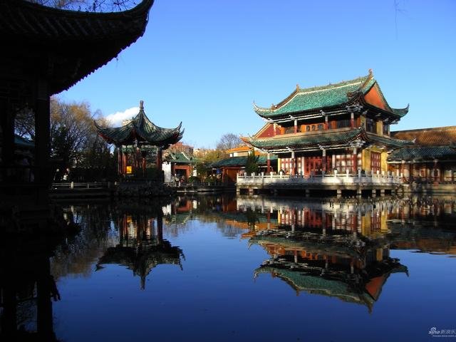 During the Kangxi period of the Qing Dynasty, fan Chengxun, the governor of Yungui, and Wang Jiwen, the governor of Yungui, built Biyi Pavilion (commonly known as Haixin Pavilion) in the middle of the lake. The water was bright and the trees were green.