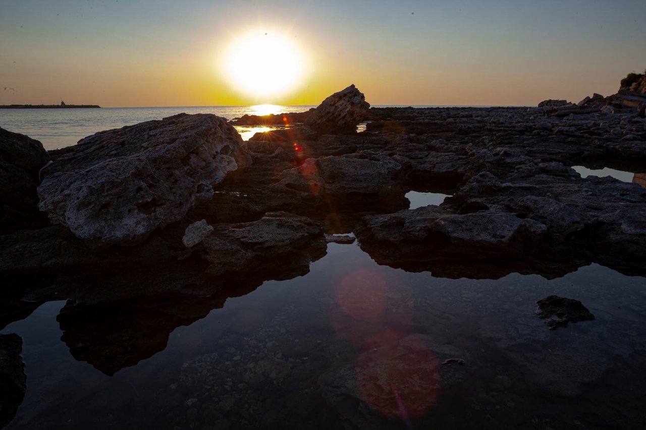 And so, I stand on black stones and watch the sunset. The majestic sight is enhanced by the absence of wind. The sea is almost calm. Light ripples on the water recede into the distance and on the horizon the yellow-white disc of the sun smoothly plunges into the dark waters.