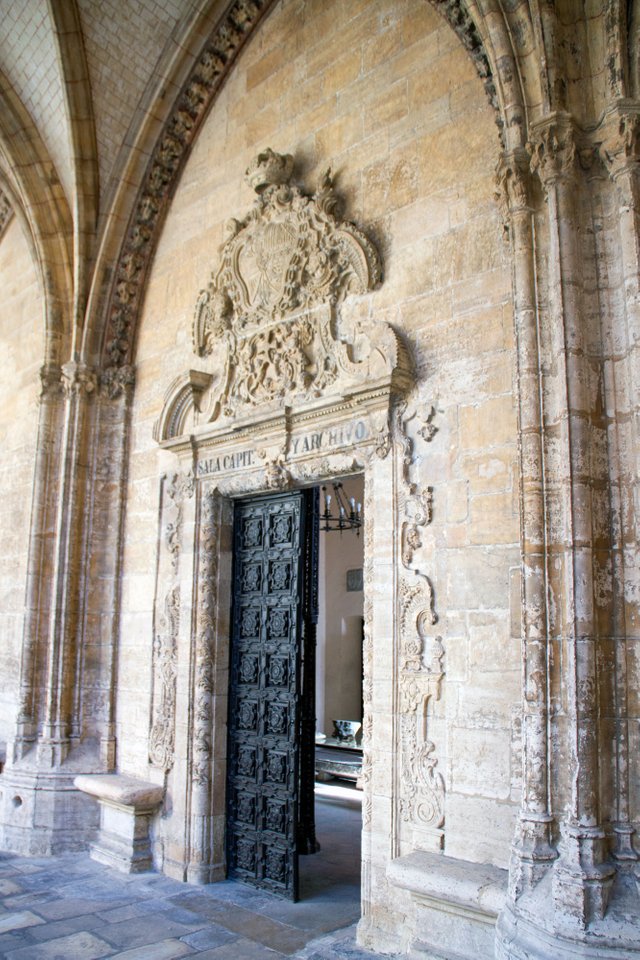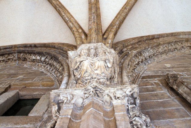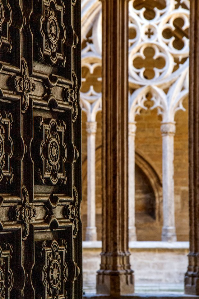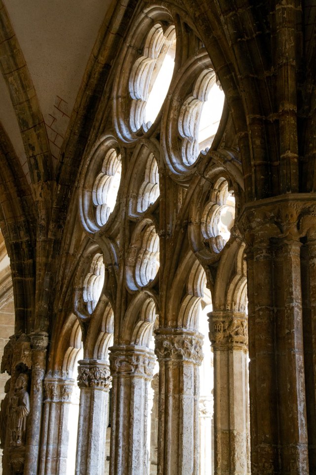 Depending on how interested you are in gold-plated crucifixes and ornamental robes, you might spend more or less time in the museum. We chose “less”, but mainly because we were too excited to enter the Gothic Cloister. Descending stairs at the far end of the museum, visitors are deposited in a beautiful courtyard. Rectangular with exquisite pointed arches around the yard, this is Asturian Gothic at its most pure.