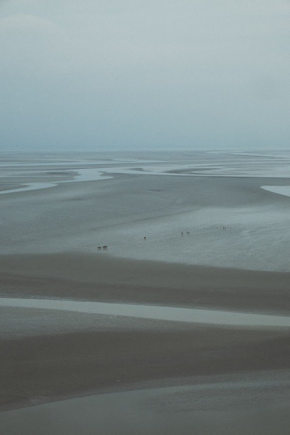 Walking from the shuttle bus station to the site took us about 40 minutes but it definitely felt like the best way to discover the Mont Saint-Michel bit by bit. We first walked through moors and sand on a dyke section, taking pictures of the medieval fortress looming in the background without a soul by our side. The path eventually led to a walkway bridge standing above the bay, which in turn led to the Dam right in front of the town.