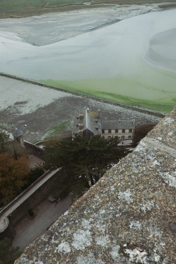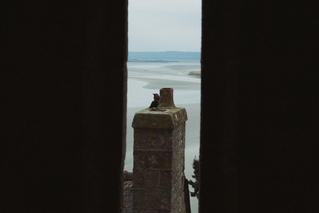 The steep walkway leading to the Abbey wasn’t much of a hike either, especially since we stopped every minute to take pictures of the picturesque cobbled streets and medieval houses down below or of the crows standing on ancient chimneys covered in moss. In the background, the bay was stretching far beyond reach and its colours seemed to never stop shifting, just like those of the unstable sky over our heads.