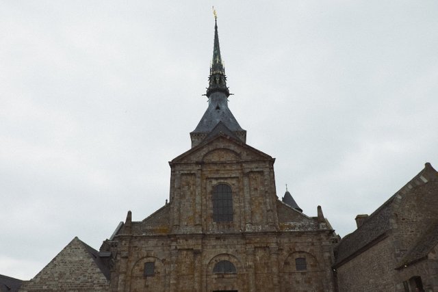 Sun was up when we had left our city but the occasional rain showers and threatening clouds had been following us ever since. Luckily, the rain had stopped when we first got a glimpse of the massive fortress in the horizon. All we could see from where we stood was the pointy end of the Abbey’s spire, while the rest of the rock was shrouded in fog. It did look like a remote island far away from civilization, up until we got to the parking lot.