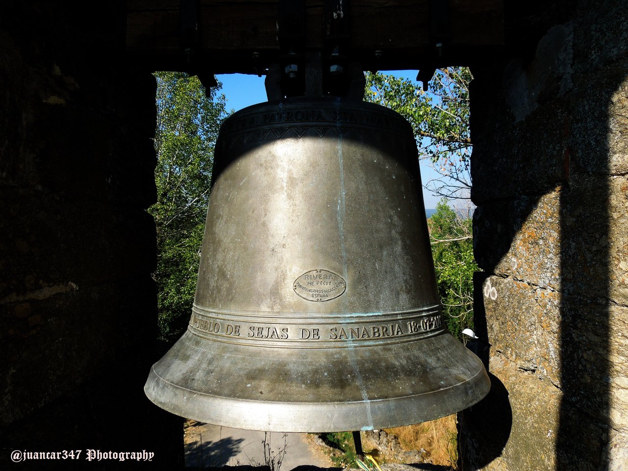 In the main bulrush, there are two bells, which have, respectively, the following inscriptions: 'To our Patron Santa Marina', and 'Let these bells always ring with joy'. Both have, in addition, a second inscription, which defines the origin and the author of its realization: 'Rivera me fecit, Montehermoso (Cáceres), Spain'. The first was donated by the people of Sejas, and the second by the family of Andrés Vega, both on July 18 - their political resonance seems more than casual - from 2005 and 2001.