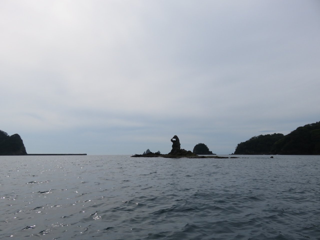 We decided to go to Tago beach for our first attempt. There's an interesting shaped rock there out in the bay which looks a bit like Godzilla, or a Krakens hand rising from the water.