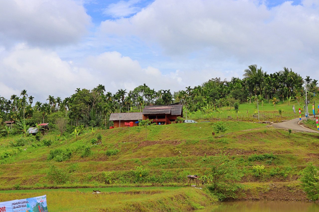Btw, on the hill, there is also an Aceh traditional house which is also the main attraction, but I didn't go there, because I had to watch the children bathing in the river, I only got the picture from afar. But if it looks beautiful from below, I'm sure if I took a picture from up there, it would be prettier. You can imagine that.