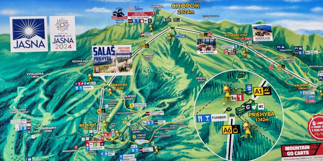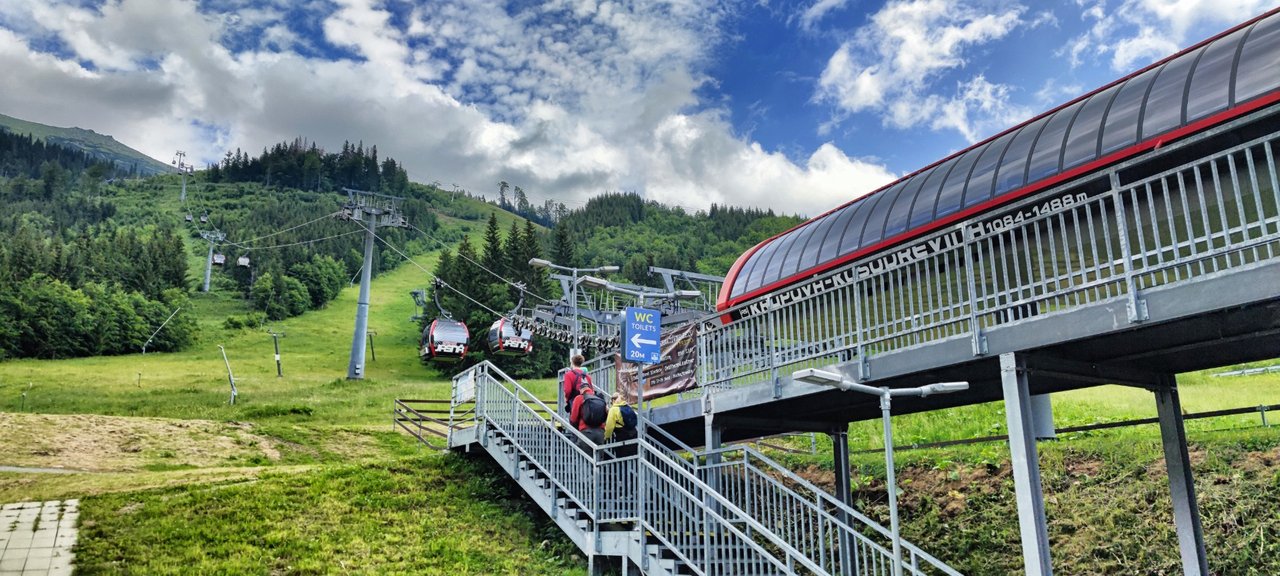 When it comes to reaching Chopok Mountain, adventurers have two options: taking the cable car or embarking on a challenging climb using their own human power. We don't do that.
