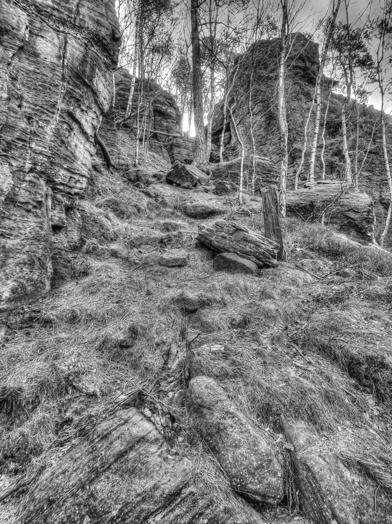 The comfortable and beautiful route leads through lots of small rock towns. From the Ochsensteine you go to nameless rock needles - mountaineering on sandstone rocks was once invented here near Ostrov, and today it is once again a paradise for rock climbers. If you continue along the path, you will pass through a beautiful valley to the Elbe and Königstein Fortress. However, if you stay nearby, you can choose the Grenzweg (Border Trail), which is part of the Forgotten Borderland educational trail, and on this, for example, to the little-known and beautiful hike through the breathtakingly beautiful Rájecké skály rock group.