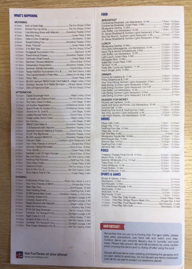 So I want to lay out the schedule of the day at sea for the most curious.