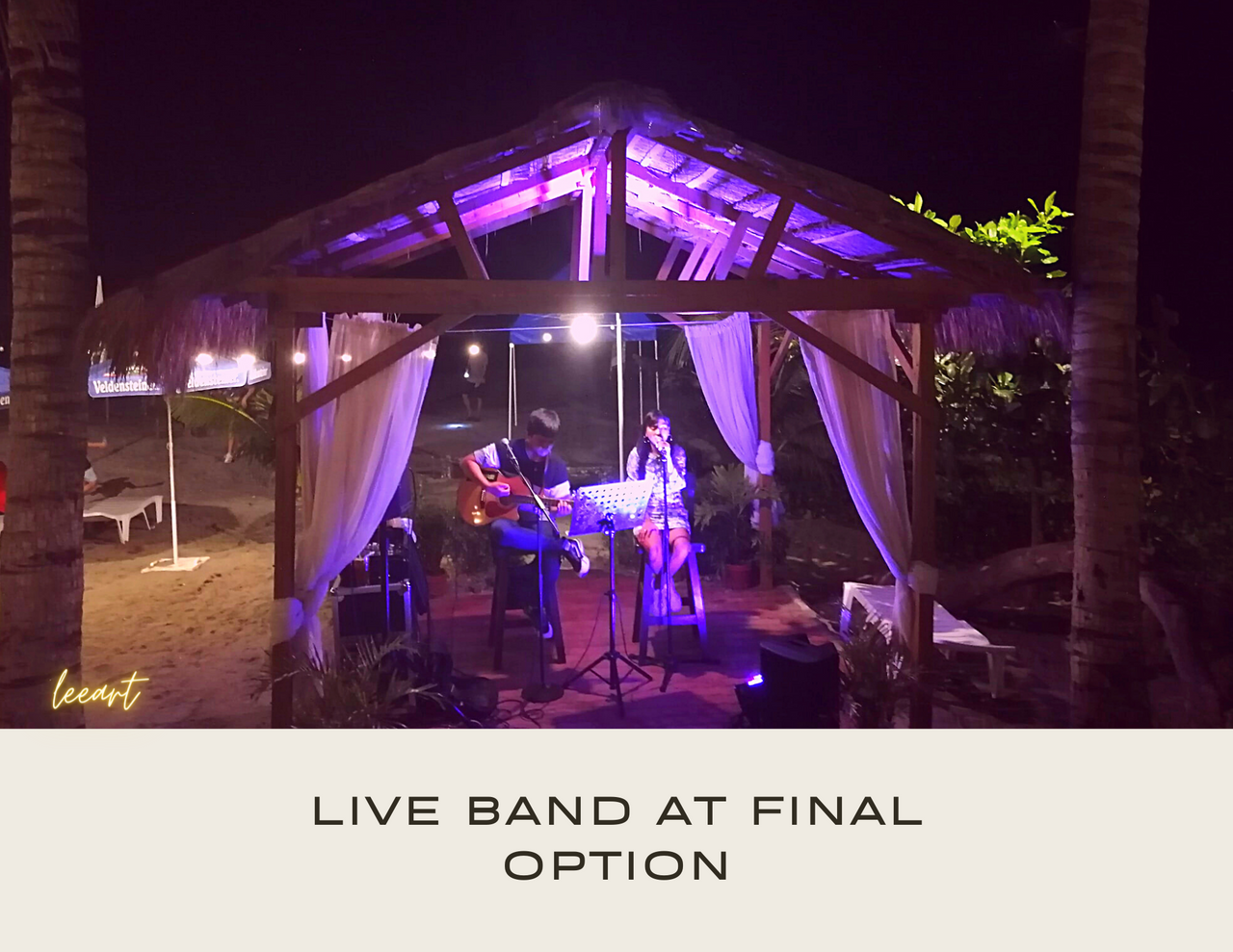 We tried checking out other places but it was at Final Option that we decided to have dinner. When we got back from the beach after having a sunset viewing, there was a live band playing outside the bistro. Lights around in and around the property have also been lit.