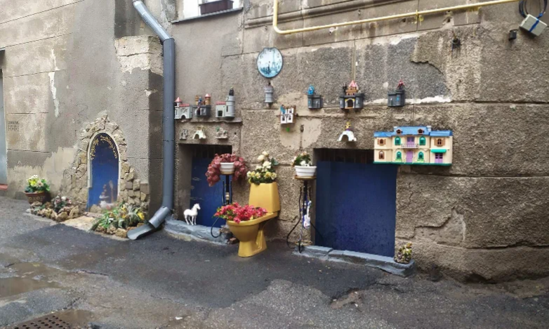 Odessa courtyard in Mukachevsky lane is decorated with a golden toilet bowl with flowers