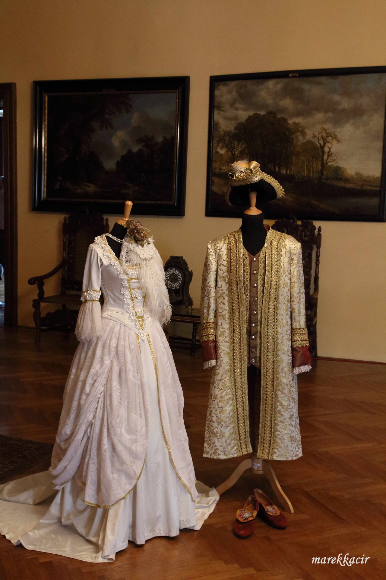 V jednej z miestností na upútalo dobové oblečenie. Ten odev vyzerá veľmi dobre. Vedel by si predstaviť, že sa v tomto oblečení zúčastním nejakého historického plesu.