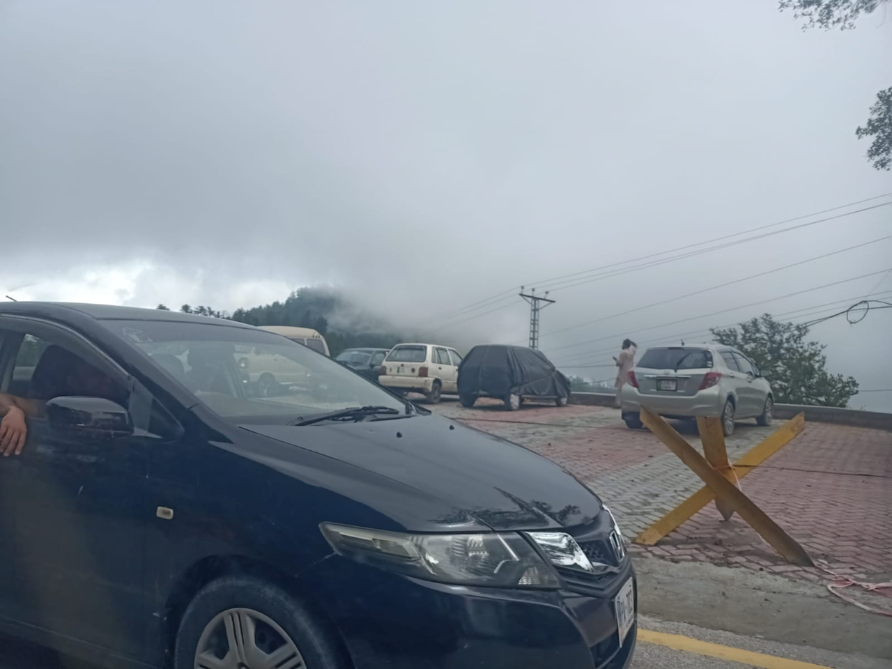 As soon as we completed half of our journey and entered Murree, we stopped at a place, and while standing there, we took some pictures because it was a point where we could see green mountains in the distance. The beauty was just beauty. The weather was very pleasant. We stood there and enjoyed it.