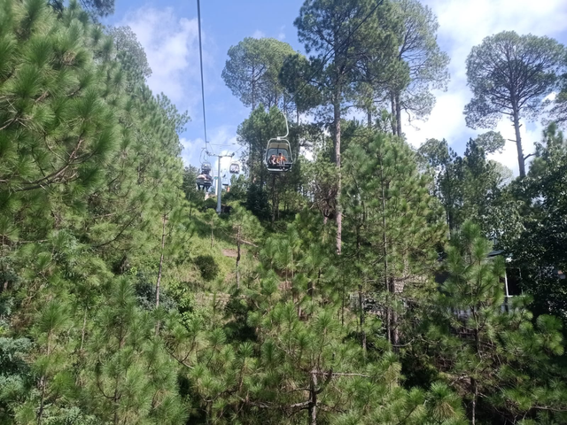 After buying the ticket, we went straight to the place where we were supposed to sit on the J-lift. We waited for our turn. When our turn came, we sat on one chairlift in pairs, and the six lifts started moving upwards. This is an electric chairlift. It only needs to be operated once. Once it starts, it doesn't stop, op and you have to sit on it and go upwards on your own. This was my first experience. We were a little scared to go up, but we were also enjoying it. As we were going up, cool breezes were waiting for us, and they were welcoming us, and the surrounding environment looked very beautiful.