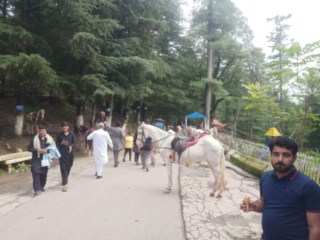 You will see a park in Nathia Gali. You will see a few horses in the park. Those horses take you on a tour of the mountains. Their tickets are sold separately. Apart from that, you can also go shopping in the market in Nathia Gali. It has become a very good point, so we visited there for a while.