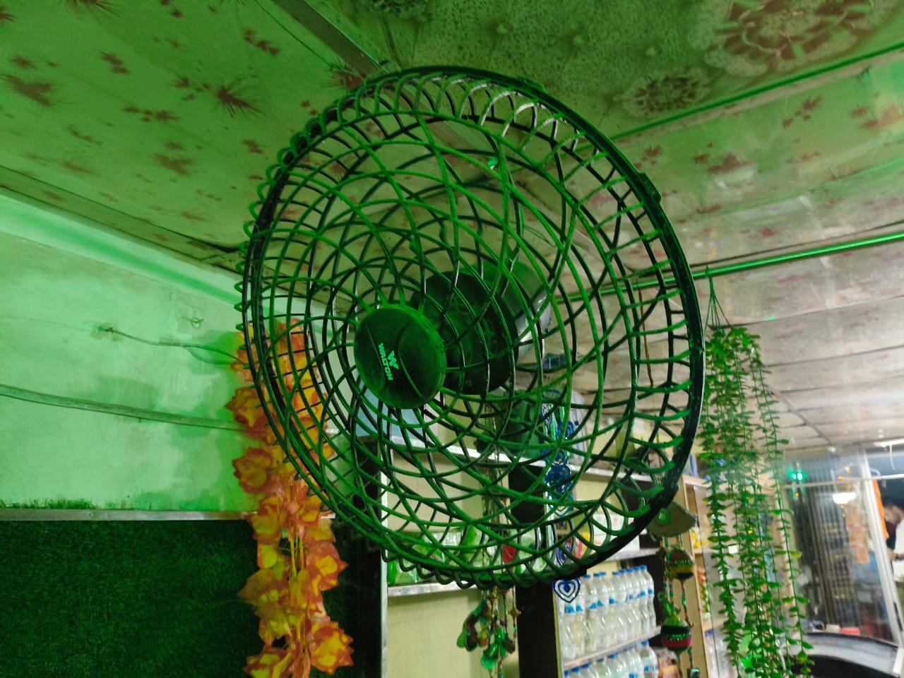 You can see how beautifully they decorated the walls and surroundings of the restaurant in the picture above. They decorated it with different types of artificial items in a green theme. They used different types of green artificial grass and vine leaves here. Moreover, they used different types of decoration items and also used different types of wallpaper on the walls of the restaurant which made the restaurant very beautiful and visually appealing. Besides, they used small fans next to each table of the restaurant so that the customers do not feel hot in any way. I really liked these small things and their caring attitude towards the customers.
