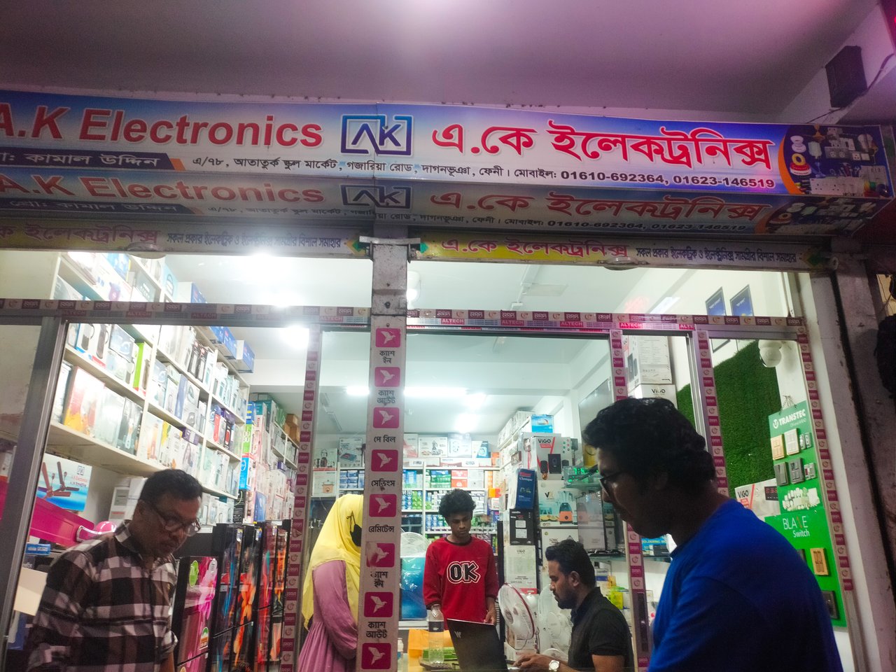 Assalamu Alaikum, how are you all? I hope everyone is well. Today I will share with you an electric corner shop review. The name of this shop is A. K Electronics. This shop is also located in Daganbhuiyan, Feni district. When you come to Daganbhuiyan and go right in front of Gazaria Road, you will find this shop. It will be convenient especially to come to this shop from Feni district. It will be convenient to come by any vehicle of your choice, especially CNG. Since it is next to the main road, in this case, I think it will be very convenient to come to the shop.