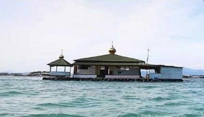 Floating Mosque Al-Aminah is a beautiful place of Muslims located at 300 meters from the lip Sari Ringgung Beach, District Padang Cermin, Pesawaran District, Lampung Province. This mosque can float because it is supported by some buoys and anchored so as not to drift ocean currents.