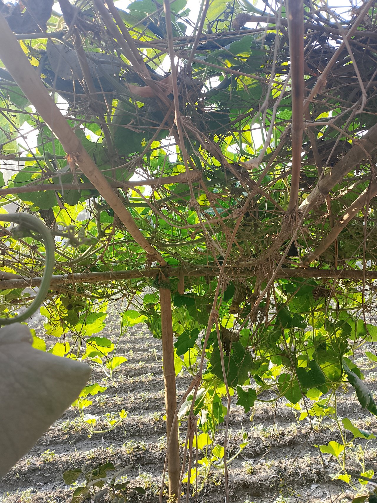 These are pumpkin vines. These plants primarily produce pumpkin, which is a popular food in our country. However, this pumpkin plant has many roots emerging from a small plant. As you can see, there are many roots, several branches, and some bushes have formed. But it’s still a single plant. In our country, these are used quite well in curries. Many people take them to the market and sell them. The pumpkins grow much larger, but the branches can be cut and used in curry for cooking. While I was returning home, I saw someone looking at these plants. I stopped and talked with him about them. During our conversation, I thought of taking a few pictures of the branches, which I’ve now shared with you.