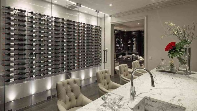 Viene con una enorme bodega de vinos, sala de cine y una tienda repleta de dulces. También cuenta con comodidades que incluyen un gimnasio, una casa para huéspedes y un garaje para cuatro super coches.La casa de dos pisos, es de estilo francés y tiene detalles de diseño como chandeliers e increíbles chimeneas por toda la residencia. Floyd Mayweather puede disfrutar de buena comida preparada por su chef privado en la enorme cocina o disfrutar de ricos cócteles una sala de estar que tiene un bar y una bodega de vino de cristal.