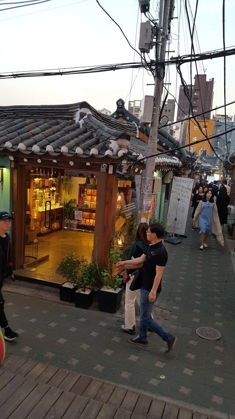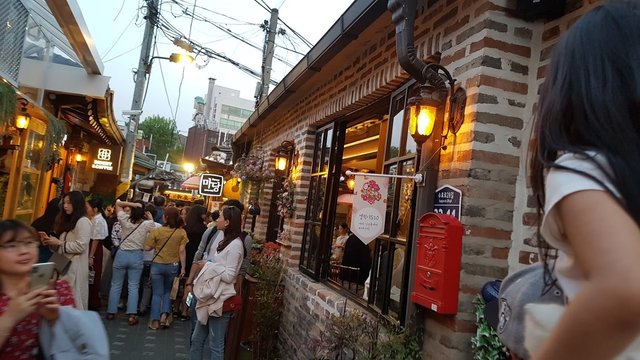 주말 저녁 익선동은 더더욱 붐볐다. 하지만, 노란 조명이 한옥과 어울려 더 운치있었다. 갤러시 핸폰 출시 광고차원으로 익선동에서 예쁜 청년들이 사진을 공짜로 찍어주고, 현상까지 해주더라는 ^^ 한바퀴 휘 돌아보고, 딸에게소프트 아이스크림 하나 사주고, 이태리 총각서 의자에 앉아 기다린다. 금새 자리가 난다. 아담한 이태리 식당. 마르게리타 피자와 해산물 파스타, 생맥주 두잔 4만 오천원...시원한 맥주랑 해산물 파스타가 너무 맛있었다..추천!! 하지만, 식당안 분위기는 좀 아쉬움....근대식 한옥의 내부를 보고싶었는데, 그냥 천장만 한옥이었다ㅜ.ㅜ 다음엔 '호호 식당'에 가볼 계획이다.