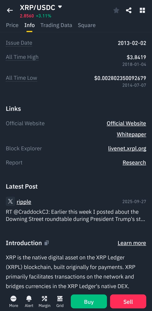Many people have sold this token, as well as many people have bought and saved, and they have also benefited from it. The token has given us good things. However, the token I am talking about is called the XRP token. The current price is $2.85, but its price was $3.84, and the lowest price was $0.0028 in the lower position. I think those who bought this token at that time have benefited a lot and can bring something better in the future.