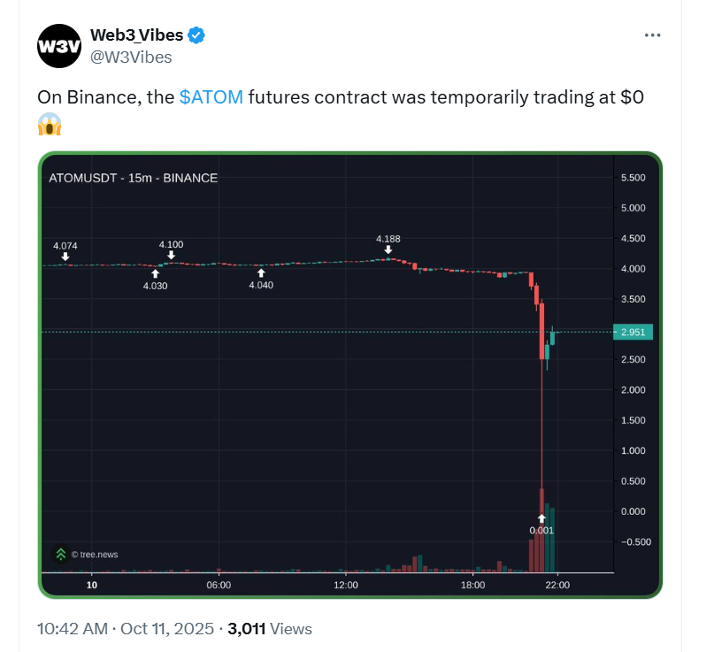 Lesson Learned Everything is possible on FUTRUE market ATOM Binance Crash to 0yela (68)in #trump • 5 days ago Crypto crashed trigged by a Trump twitter about the new tariff on China. Crash start after the twitter and Trump's live speech on Friday 10/10/2025. #crypto #crash #future