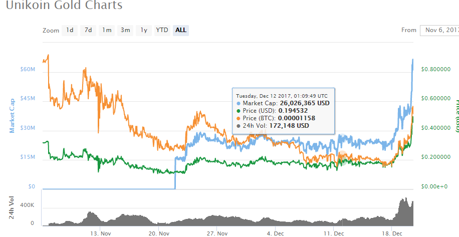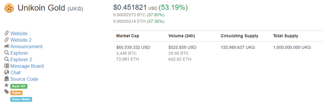 Unikoin Gold (UKG) 급등doosan (60)in #ukg • 8 years ago (edited)ICO 참가 이후 계속 가격하락하여 고민거리였던 UKG 가 급등하였습니다. 라스 베가스 MGM 제휴 소식이 호재인듯 합니다. 알렉사 랭킹도 급상승 하였군요 앞으로도 기대가 큽니다 #coindata