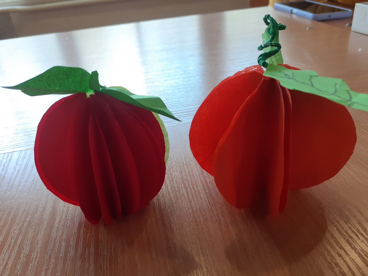 Робили сьогодні іграшку осіній лист. А син с бумаги тикву та яблуко. Іграшку ще будем наступного разу доробляти.