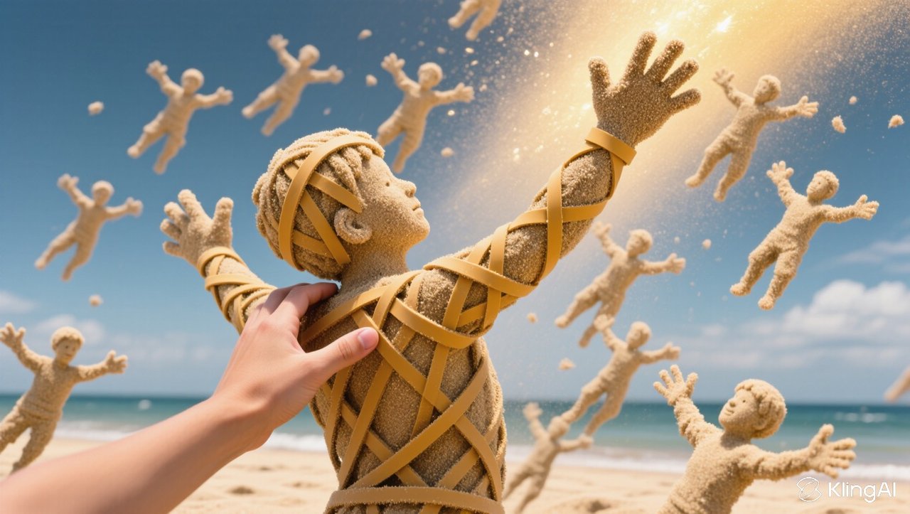 Пісок, що піднімався вгору дитячими ручками, був схожий на піщаного чоловічка, спочатку його відділяли від загальної маси піску…піднімали вгору, і він, немов, намагався підвестися…