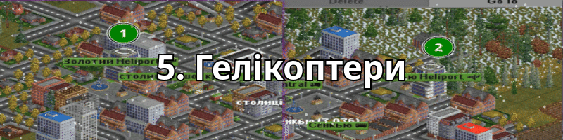 Шоб полетіть прямо з міста, ставляться два геліпорти один в “столиці вашої країни” – “Золотий”, бо й для банку буде працювати. Другий в сусідньому “Сенкью”.